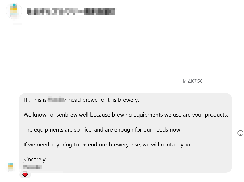 This is a Japanese customer who is currently using our brewing equipment and has indicated that they will purchase more equipment from our company for brewery upgrades or expansions: